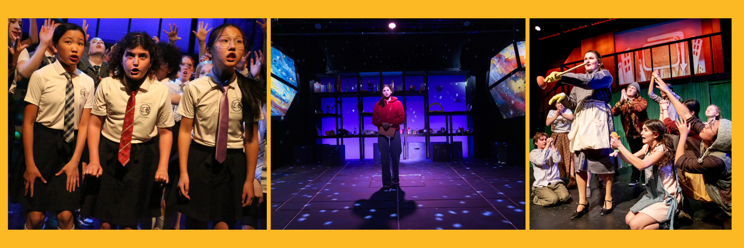 In the Middle School theatre courses, students continue to build their confidence and skills through theatre games, collaborative performance projects and a deepening sense of serious play. Students explore various elements of theatrical design and technology. There are also enrichment opportunities each year for students to dig deeper into their theatre interest by taking part in the play, musical, or after-school theatre club.