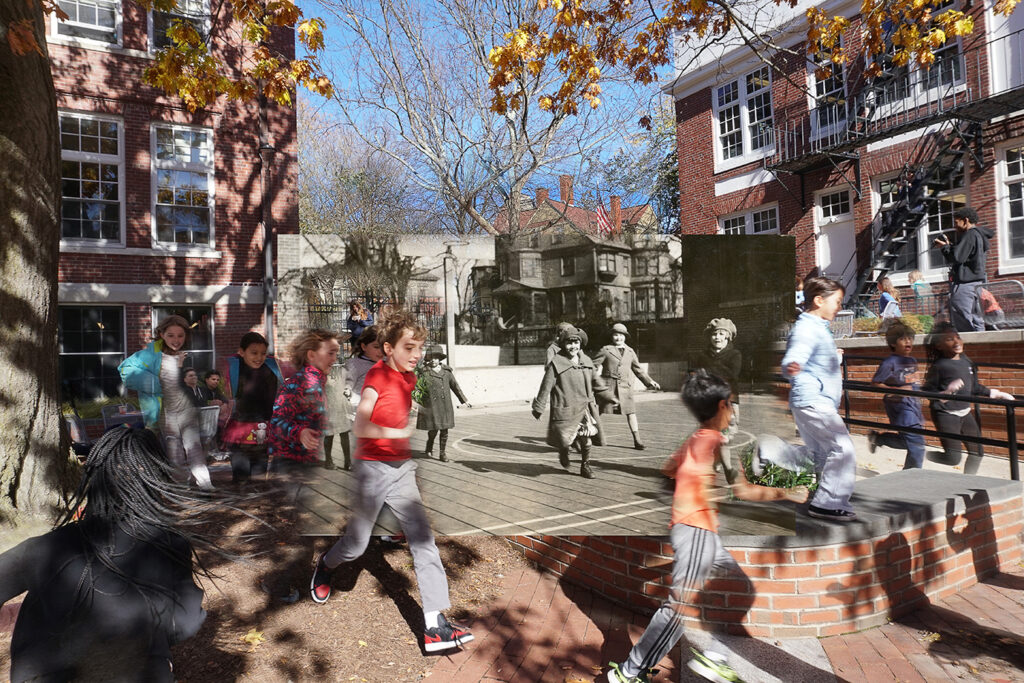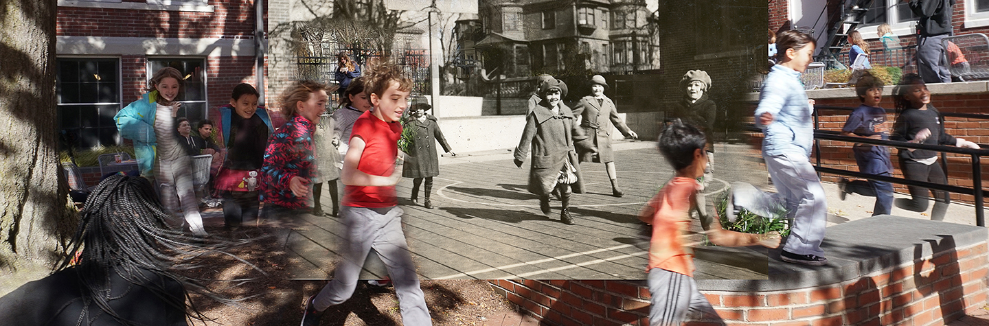 The art of collage provides a remedy to the dilemma posed by the single photograph: An individual image needs to be joined by others in the same way that individuals come together to find meaning as a community. By montaging multiple photographs into one image, connections can be made across time, past and present may converge – even speak to each other. I have applied this technique to several time-based projects, including my family life, the history of Roger Williams Park, and The Wheeler School, where it has been my great pleasure to work in the Archives preserving our school’s history and our founder’s legacy.