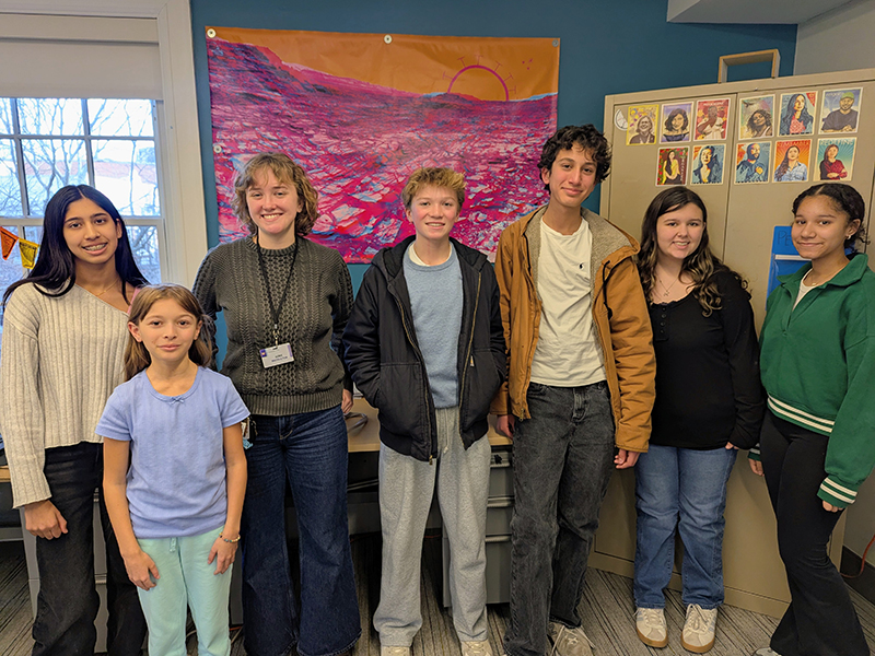 A few members of the FONT team: from left to right, Leena A. ’31, Sophia S. ’32, club advisor Maize Cline, George J. ’30, Kabir P. ’30, Julia B. ’30, and Lia C. ’30.