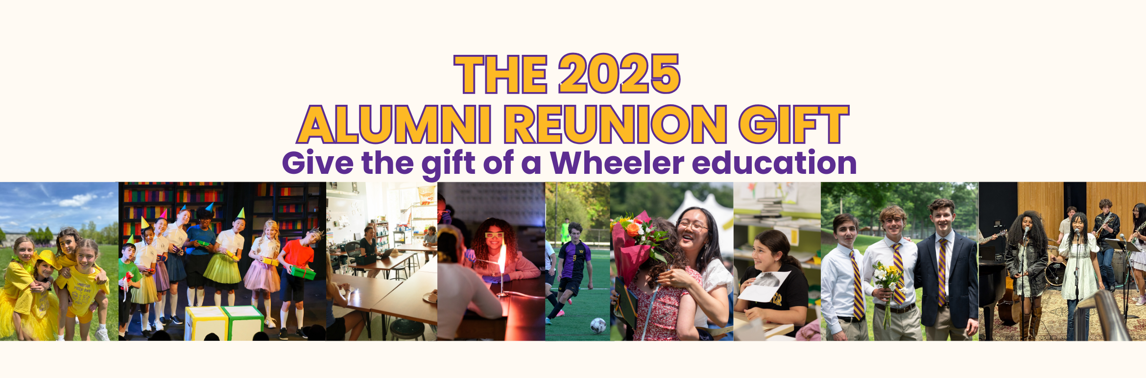 Every $25,000 raised through the 2025 Reunion Class Gift supports one student at Wheeler who otherwise could not afford this life-changing education. This year, the Alumni Reunion Gift (an aggregate of support from all reunion classes ending in 0, 1, 5, and 6) will be directed to this year’s financial aid budget. It is a powerful statement when alumni unite to make financial aid the centerpiece of your celebration.